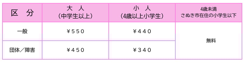 *さぬき市在住の小学生以下の方ははいつでも無料です。