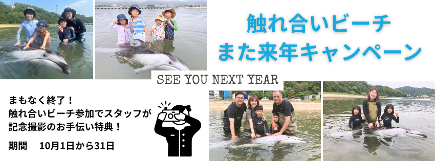 そこで、『触れ合いビーチまた来年キャンペーン』としまして、触れ合いビーチに参加のお客様の記念撮影を、スタッフがお手伝いする特典をお付けいたしました!