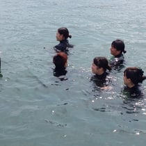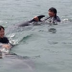 イルカの背ビレにつかまって、スピードに乗って海を泳いでみよう!!!