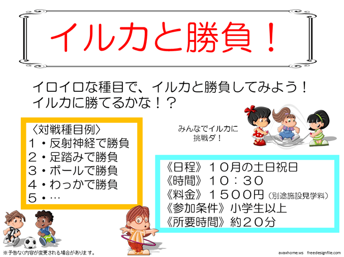 みなさまからイルカへの挑戦状、どしどしお待ちしていまーす!