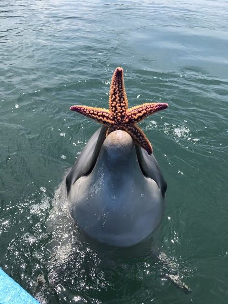 ドルフィンセンターのイルカ達は私達のところにこうやってお片づけしてくれますが、
