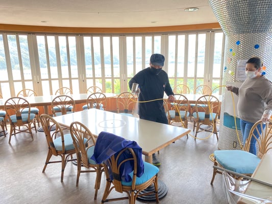 また、共有部(テーブル、トイレ、手摺り等)の清掃、アルコールによる消毒を実施しております。