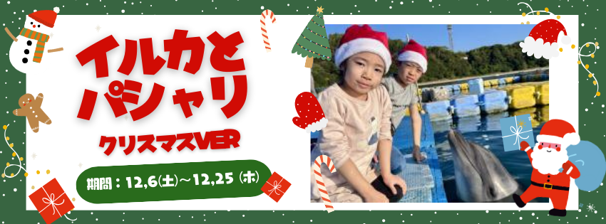 人気のイルカと一緒に写真撮影ができる『イルカとパシャリ』が期間限定のクリスマスバージョンとして実施いたします。